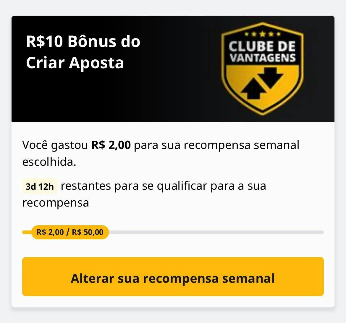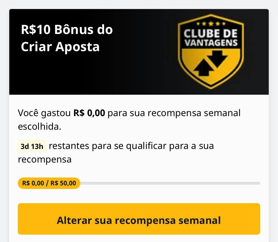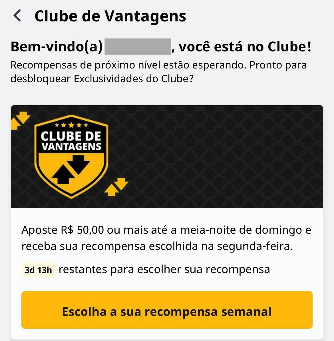 - Se você não apostar o valor necessário durante a semana até 23h59 de domingo (horário de Brasília), não se qualificará para o Clube de Vantagens e não ganhará a recompensa semanal.